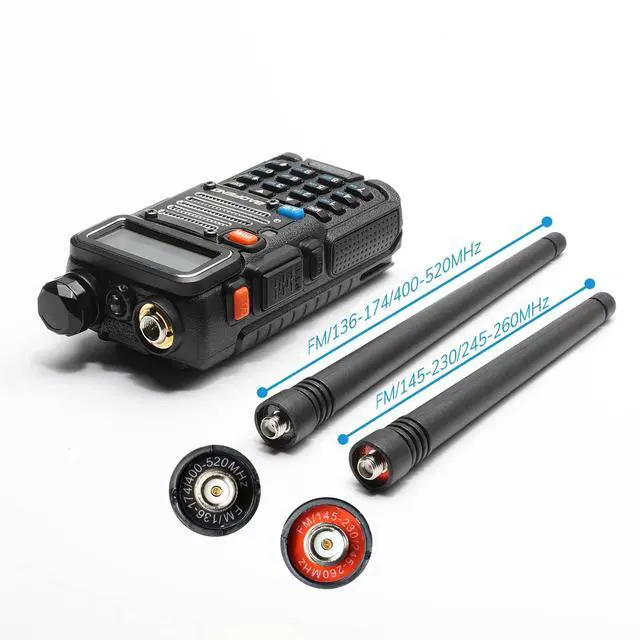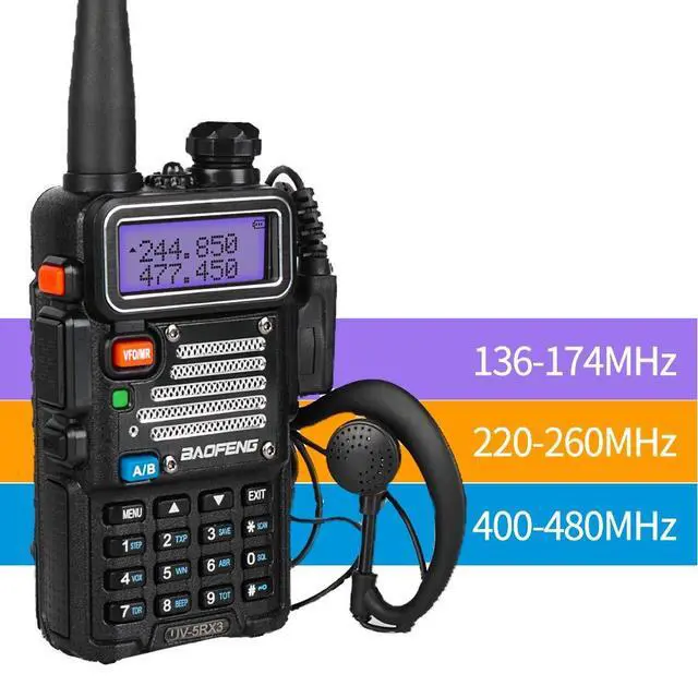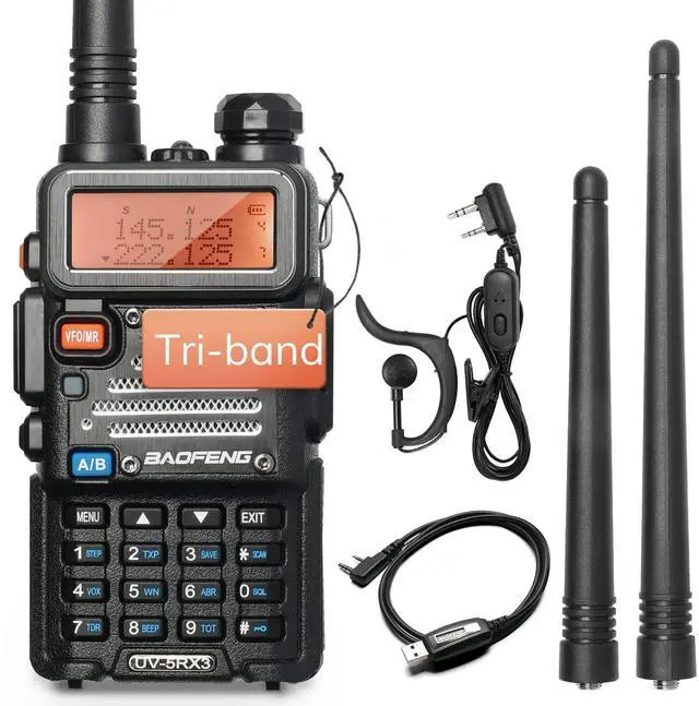 NOTE: We recommend using official CPS to program this radio. Chirp will remove the 1.25 m (220 MHz) band after using third-party software, and the official CPS has no way to restore it. ^^ [Tri-band radio] the UV-5RX3 was specifically designed as a tri-band transceiver. The internal filtering allows not only the traditional VHF and UHF frequencies, but also includes the 220-225 MHz ham band for the US. FCC Part 15 and part 97 certified (ID: 2ajgm-uv5r) ^^ [Classic 5r-plus design] uv-5rx3 continued the Classic 5r-plus design with glossy metal Shell and it shares almost all the accessories with baofeng UV-5R Plus. ^^ [What's more] two antennas included. One is for the standard VHF/UHF band and the additional One is specifically tuned for 220 MHz. ^^ [Features and programming] 1. tri-color display; 2. DTMF access; 3. PC programmable via cable.