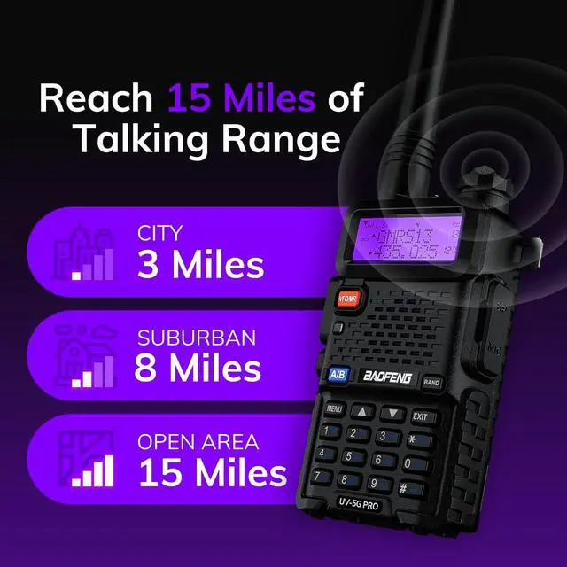Long Range Transmission: Experience long-distance transmission capabilities, reaching up to 15 miles. This extended range allows you to communicate effectively over vast distances, making it ideal for outdoor adventures, emergencies, or professional use.