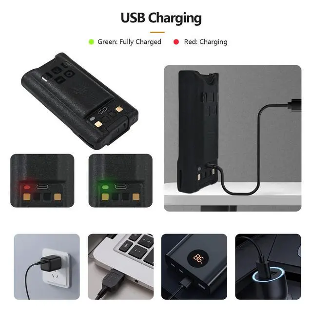 Newest arrival and new upgarde long Life replacement battery for BAOFENG UV-9R Plus / UV-9R Plus MK1 / UV-9G / UV-9R Pro / UV-9R Pro V1 / UV-9R Pro V2 / T57 / BF-T57 / GMRS-9R / UV-XR radio. If you have any problems with the compatible models, please feel free to reach out. ^^ USB-C charging brings more convenience. Compact and lightweight portability; great spare battery when you go camping or other outdoor activities.