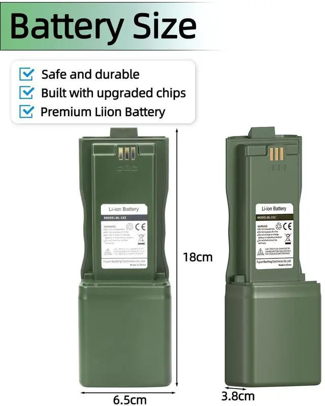 Certified Original Baofeng Battery: Patent appearance, Using high-quality mainboard, New package, Better quality. ^^ Support Type-C Charging MethodIt can be charged anytime and anywhere with a USB Charger or Car Charger. It is portable, you can easily carry it with them. ^^ Expert Certification And SecurityLow Heat Dissipation / Over Current Protection / Over Temperature