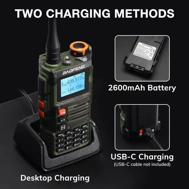 Long-Lasting Battery: Powered by a robust 2600mAh battery, the K63 walkie-talkie offers extended usage. With flexible Type-C and desktop charging options, recharging is easy and convenient, ensuring you're always ready for communication