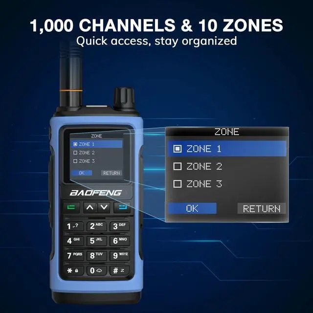 Zones: Organize up to 1000 channels into 10 customizable zones, allowing you to quickly switch between groups for work, outdoor activities, or emergency communication. Simplify channel management and stay connected without hassle ^^