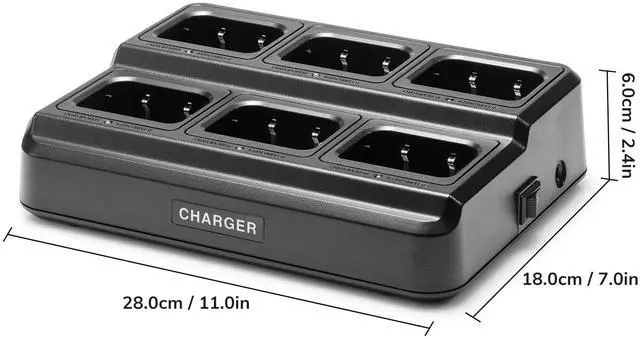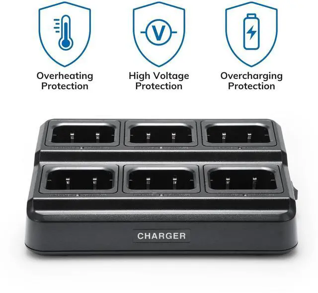 [Space Saving] This is a good choice if you are eager to save more space for multi-device charging. One desktop six-way charger for one outlet would meet the charging needs of six radios. Reserve more outlets and space for other electronics.