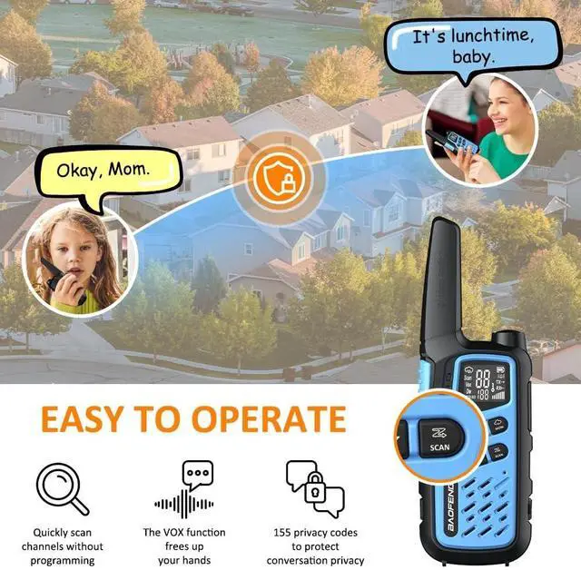 Versatile Use: Each order contains 2 walkie talkies that can be used in various scenarios, such as family outings, neighborhood communication, outdoor activities, group interactions, friends' party, camping, hiking, or even in daily use. Its an ideal portable and useful handy tool for communication on many occasions ^^
