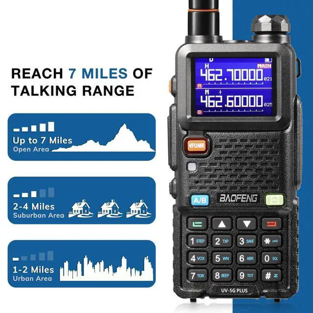 UV-5G: UV-5G plus brings you 969 fully customizable channels, a new frequency copy feature, an extended battery capacity from 1500mAh to 2500mAh, complete with a USB-C port. It also features a larger 1.9" color display. Support Chirp "UV-5G Plus" under Radioddity