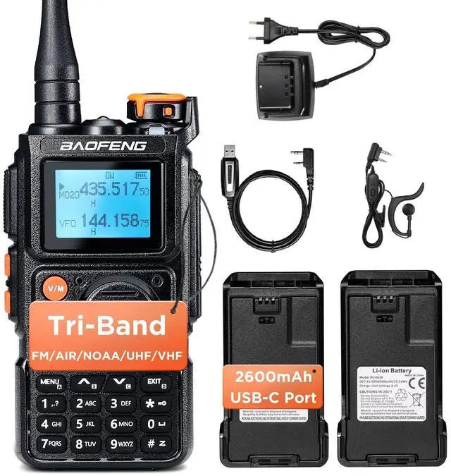 Powerful Tri-Band Transmission: Boasts a 5W power output, supporting tri-band transmission and multi-band reception across a wide frequency range, including VHF, UHF, FM, Airband, 1.25M, 1M, and NOAA. Whether navigating urban areas or remote terrains, the K6 ensures clear and reliable communication.