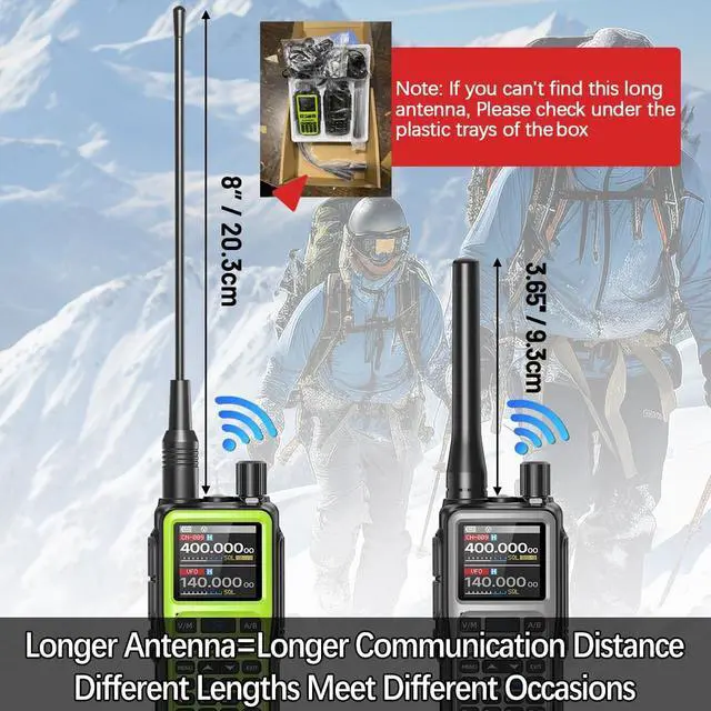 LCD Display: Easy communication without PTT transmission, safer and more efficient communication during cycling, climbing, driving, camping, hunting, police patrols, construction site operations, and business work. The large color screen is easy to see in daylight and direct sunshine, making operation more clear ^^
