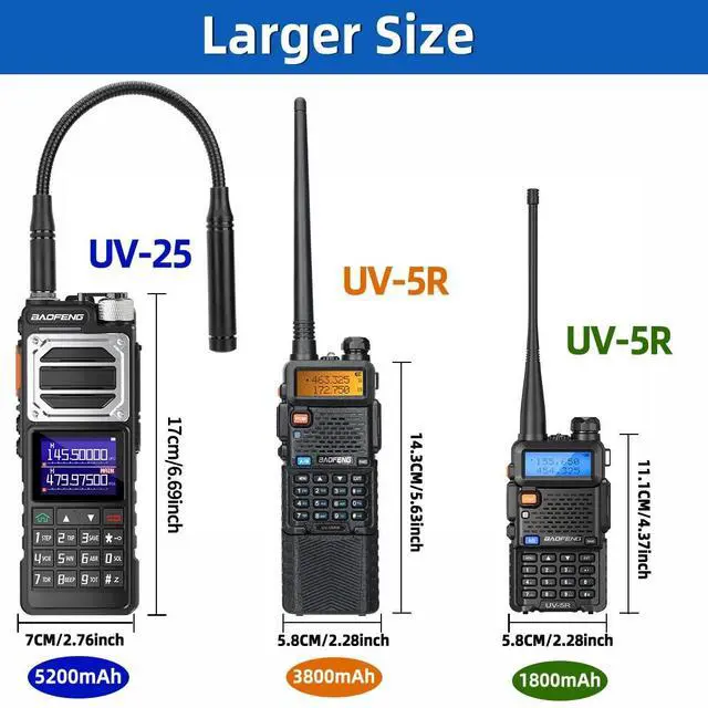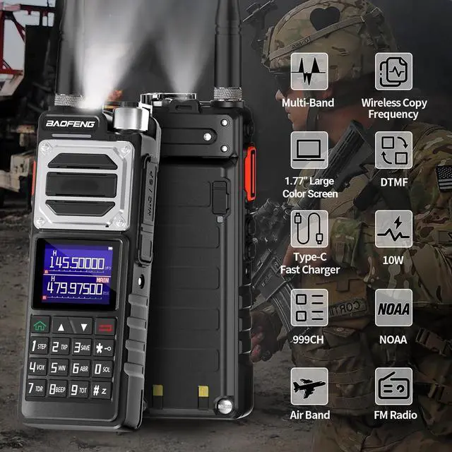 Range: 144-148MHz, 420-450MHz, Up to 999 channels, High /Medium /Low Tri-Power Switchable, 1.77 inch color large screen display and Enlarged body size brings you an extraordinary use experience.