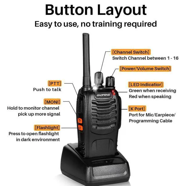 Use: Set up in seconds! Simply rotate the channel knob to select 16 Channels presets. Sync 4 radios on the same channel for instant communicationno programming required. Perfect for families, events, or team coordination.
