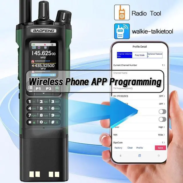 Phone Programming & Copy Frequency: By simply pairing with your mobile device, you can swiftly input and adjust frequencies. It streamlines the process, eliminating complex cables and enhancing user convenience. Easily decipher the frequency of another ham walkie talkie without the need for computer programming. ^^