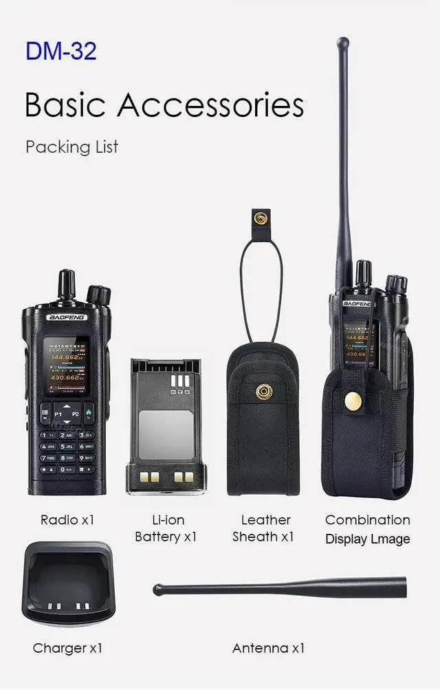 Package Included: DM-32 Two way radio x 1Power Adapter x 1USB Cable x 1User Manual x 1Belt Bag x 1