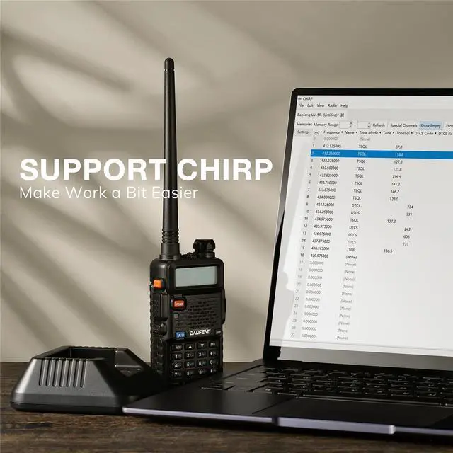 test (standard: FCC 47 CFR Part 2 and 90). Kindly check the test report below from a third-party testing agency. ^^ [Come with Six-way Multi-unit Charger] Compatible with most Baofeng accessories, such as 3800mAh BL-5L battery and the 2021 latest BAOFENG Six-Way Charger in the box. Easy to find backup parts on market or from your previous models. Support manually program via keyboard, or program via PC. Besides, downloading CHIRP as it made life a bit easier for programming. Programming Cable included. ^^ [Quite Functional] Extends all the functions from the classic model: VOX / MONI / SCAN /etc. A great emergency communication scanner HT. You can talk to friends and family over a large area (if you use repeaters it would be much larger and better), enjoy the band talk under the premise of all legal compliance.