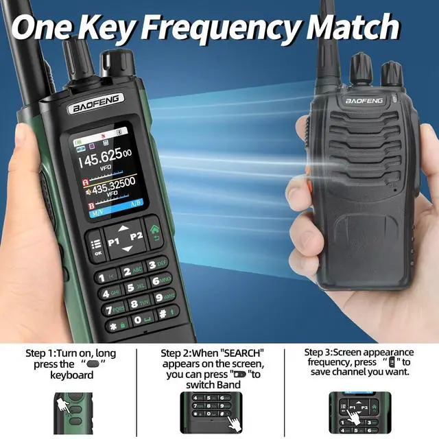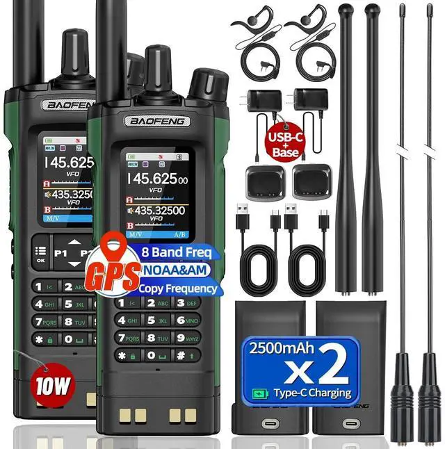 & FUNCTIONS: High/ Mid/ LowUp to 999 channelsVOX FunctionStopwatch FunctionFM RadioLED flashlightCTCSS & DCSAlarm FunctionUSB-C ChargerNOAA WeatherPackage Includes2 X Radio2 X 2500mAh Li-ion battery2X USB cable2X High Gain Antenna2 X Belt clip2 X Desktop Charger2 X User manual
