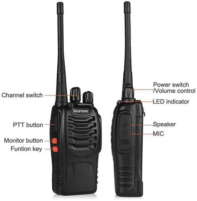 Operating Voltage: 3.7 V. UHF 16 channels. Scanning function. Emergency alarm function. PC programmable. Flashlight. You can use these radios right out of the box. ^^ [Fast Full Charged] Charge 6 radios or batteries at the same time. Full charge for