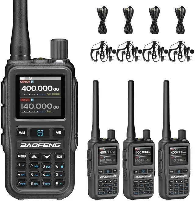 Key Features Include: Wideband receiver covering FM, VHF, UHF, and NOAA weather channels. Large 1.44" TFT screen with clear icon-based display. Dual PTT buttons for separate band control. VOX hands-free operation, flashlight, and SOS alarm. Type-C charging for convenience and compatibility. Wireless programming via Bluetooth and mobile app.