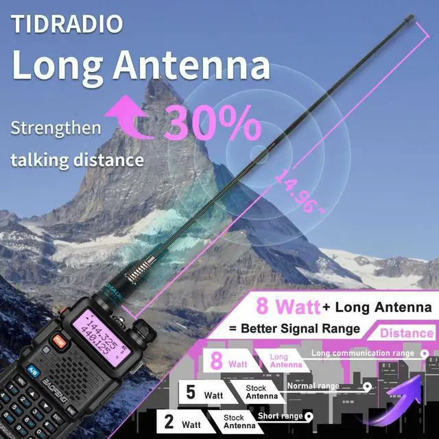 ; transmit frequency range: VHF 144-148MHz and UHF 420-450MHz; receive frequency range: VHF 136-174 MHz and UHF 400-480 MHz. ^^ Support & ServicePlease contact us via if you have any problems with your walkie-talkie. We offer a 30-day return and exchange policy and a 12-month service for your peace of mind.