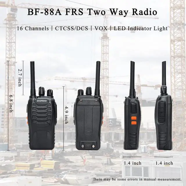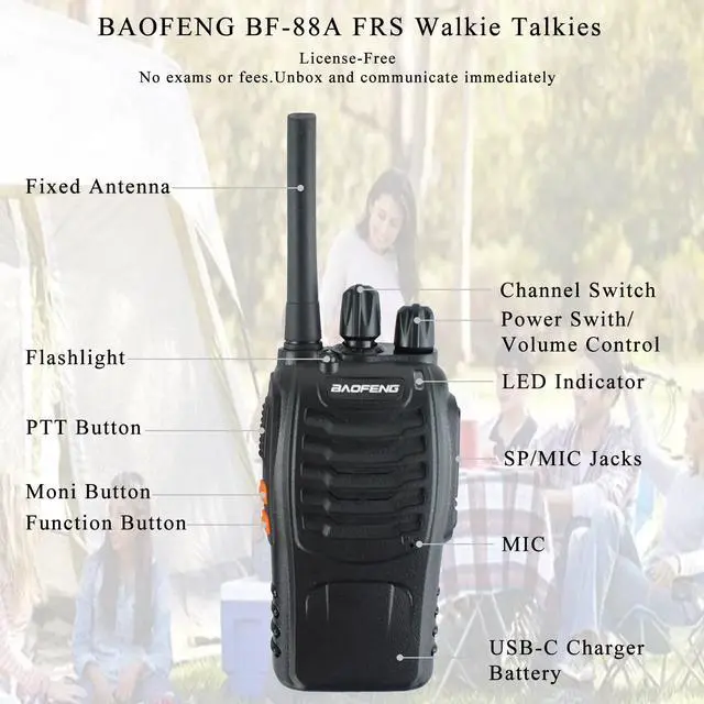 BAOFENG BF-88A Walkie Talkies Handheld FRS Radio License-Free Walkie Talkie for Adults Long Range 16 Channels Two Way Radio with USB C Charger Pack of 6Function and