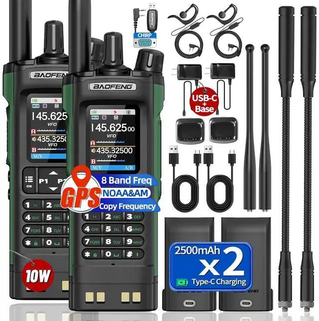 ^^ Upgraded Radio: The UV-32 has undergone a functional upgrade based on the UV-5RM, with 10W high power supporting H/M/L power switching, built-in GPS function, frequency duplication, AM reception, stopwatch timer, FM radio, LED flashlight, and stopwatch function, DTMFVOX Alarm function, 2500mAh large capacity lithium-ion battery and other functions.