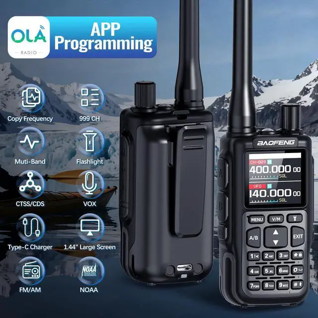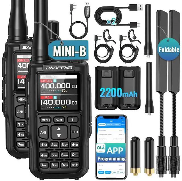 Chirp (Compatible programming software: UV-5R Mini)Upgrade UV-5R mini2200 mAh Capacity Battery ^^ Multi-functionThe large flashlight can meet your night lighting, has weather alarm, which is suitable for your outdoor travel, and also has 999 channels, Dual PTT, VOX hands-free function12 NOAA channels, channel scanning, call function, Type-C USB connector for charging ^^ One