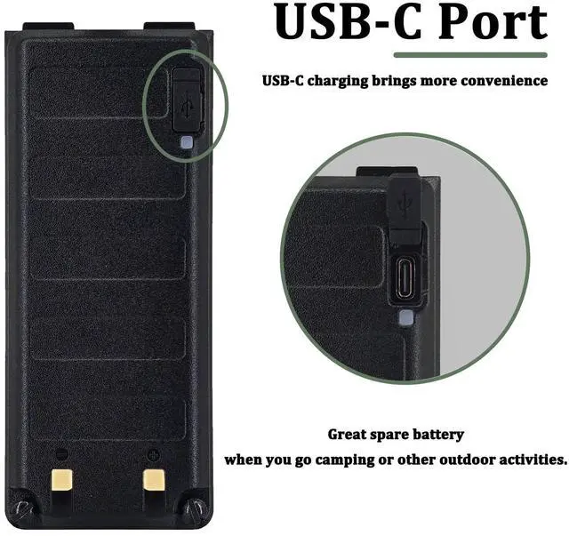 BAOFENG 2 Pack UV-25 Battery 5200mAh BL-UV25 for UV-25 Pro Max Radio Type-C Charging BL-UV25 High Capacity Li-ion Battery DC7.4V for Walkie Talkie Accessories