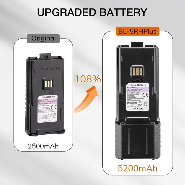 Power: Stay connected longer with this extended-life 7.4V 5200mAh Li-ion battery, offering over twice the runtime of the original 2500mAh packperfect for long shifts, emergency comms, and heavy daily use ^^
