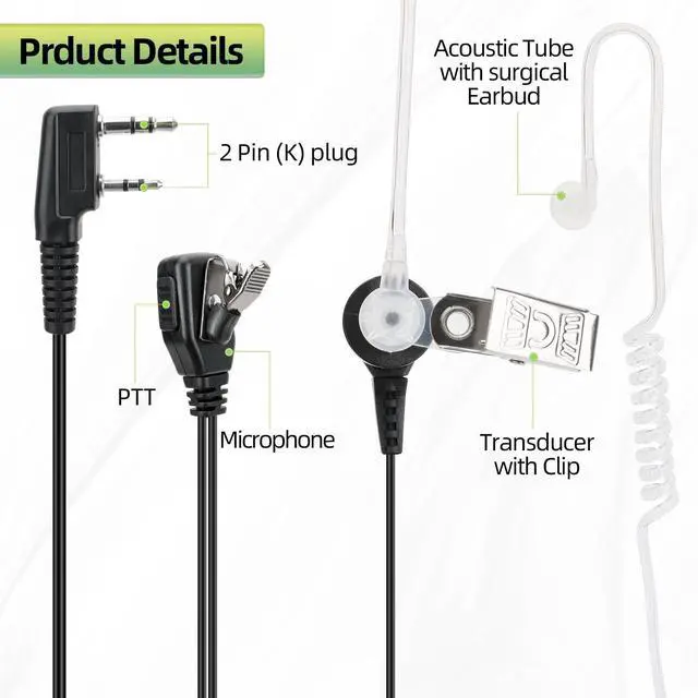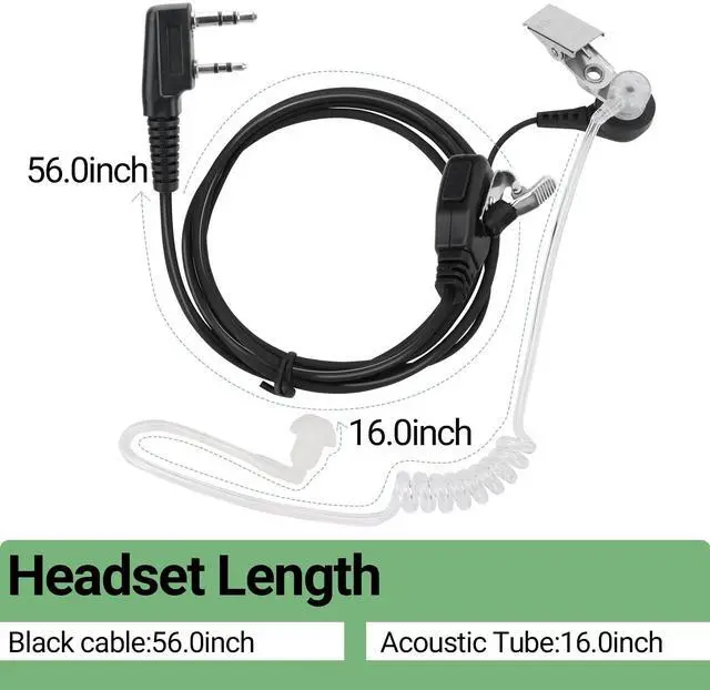 Clear Voice TransmissionHigh quality headsets can provide excellent sound even in noisy environments and bring you with an extraordinary private calling experience. ^^ High Quality Durable and wear-resistant materials with long service life. Earplugs are tightly attached to your ears, keeping your conversation private and perfect for long-term comfort wearing ^^ Soft rubber EarpieceErgonomic design, 360 degree rotatable, adjusts the most suitable wearing method according to your needs ^^ Wide Compatible For most walkie talkies such as Baofeng UV-5R mini DM-32 UV-32 BF-888S UV-5R AR-152 BF-F8HP PRO UV-17R UV-21R AR-5RM K5 PLUS UV-S9 Plus BF-H6 H-777 RT22 RT21 Two Way Radios ^^ ApplicationExcellent for use in supermarkets, shopping centers, party, police patrol, hotels, hospitals, restaurant and noisy environments