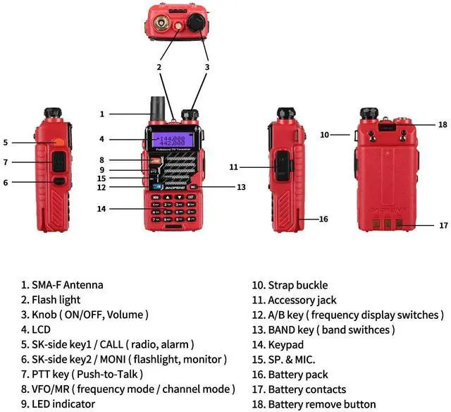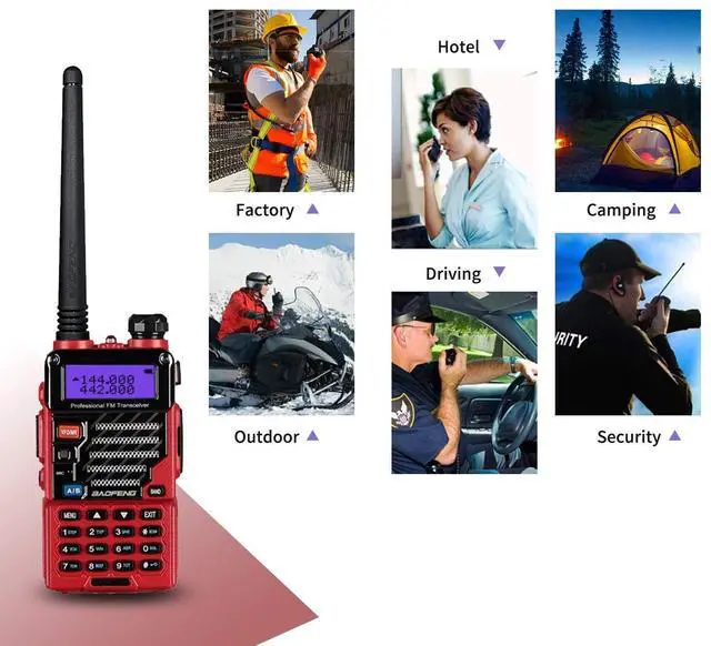 LCD display: Embedded LED torch and emergency alarm. Perfect for outdoor adventure. Baofeng UV-5R+ Plus ham radio handheld equipped with high strength and dustproof shell. Portable, and easy to carry on the go. Excellent choice for camping and hiking.