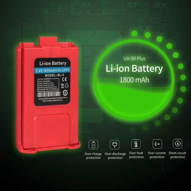 ^^ Main features: 128 Channels 50 CTCSS and 104 DCS; Function Busy Channel Lock "BCLO". Function "VOX" (Voice Operated Transmission), "OFFSET" (frequency offset for repeater access). Compatible with Baofeng 7.4V 3800mAh BL-5L battery. ^^ Tri-color backlit