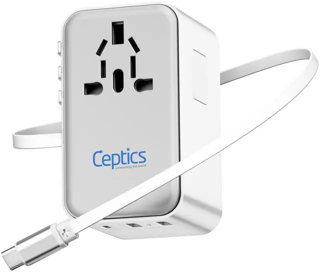 UNIVERSAL ADAPTERS]: Ceptics universal travel adapter features a retractable 65cm USB-C cable, the retractable cable provides flexibility and convenience, allowing you to charge your devices from different angles. The international adapters compact size ensures it fits comfortably in your luggage. ^^ [UNIVERSAL TRAVEL ADAPTER