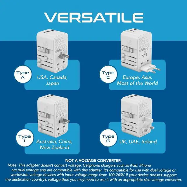 USB C]: The PD 45W USB-C cable of our travel power adapter allows for fast charging of your laptops, tablets, and smartphones. Our world travel adapters additional USB-A ports, one USB-C port and a universal outlet enables you to charge 5 devices at once.