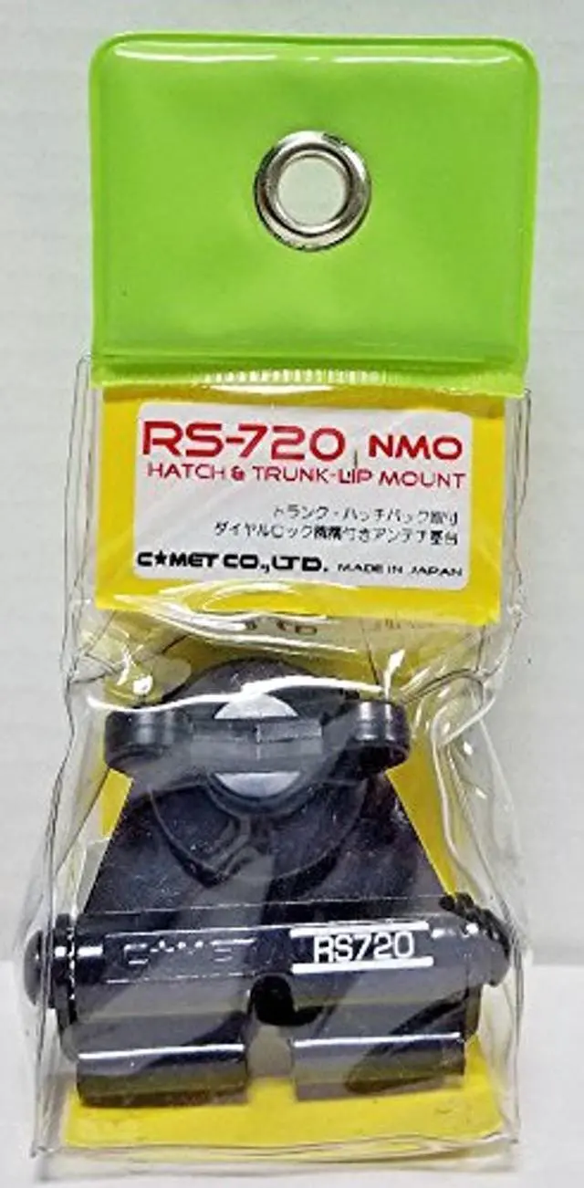 Comet RS-720NMO Medium Duty Universal Mobile Antenna Lip Mounting Bracket. (No Coax Included). It has a 3/4 inch hole to accept an NMO Mount. Now with 3 Year Warranty. Soft rubber gasket protects the vehicle paint. Four large set screws hold the mount in place, holding from the under-side. Adjusts in four adjustment planes, attach to any lip on the vehicle and it will adjust to vertical. Dial-lock to lay the antenna down and lock it in place. This will accept the matching cable assemblies from Comet, or of course you can use your own.