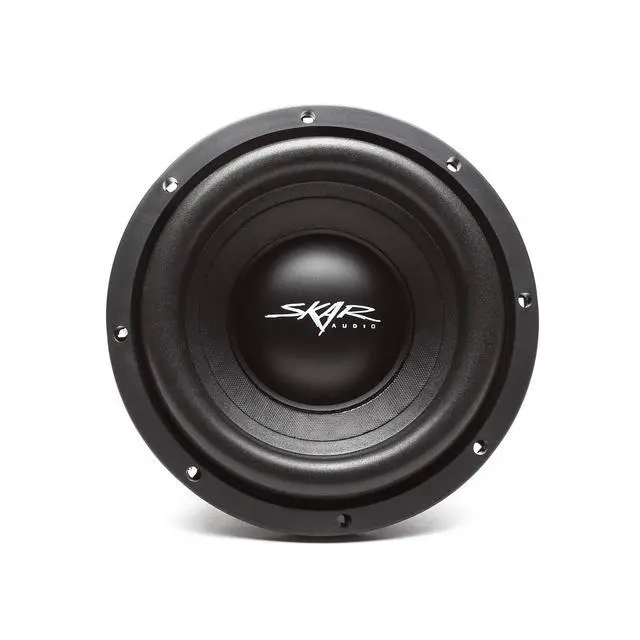 The Skar Audio SDR-8 D4 was designed to deliver hard hitting, low spectrum sound. Featuring a high flux ferrite motor, This versatile 8-inch woofer is conservatively rated at 700 watts Max power. Don't let the size fool you, the SDR-8 D4 is capable of reproducing low end frequencies with authority. The SDR-8 D4 is the perfect solution for a 350-700 Watt daily driver, featuring a 2-inch, high temperature copper voice coil that is attached to a sleek and attractive red spider system. The high roll foam surround and competition grade paper cone found on the SDR-8 D4, allows the woofer to produce riveting low end bass response, that will impress the listener every time It is playing.