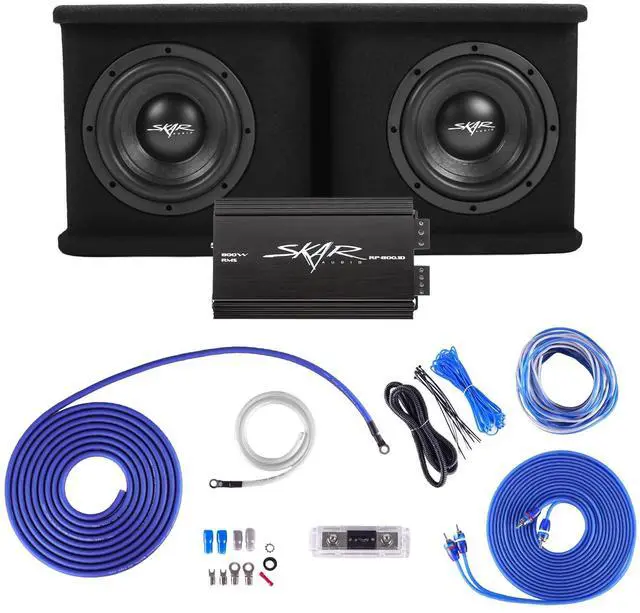 Watts ^^ RMS Power: 700 Watts ^^ Includes x1 Skar Audio SDR-2X8D4 Dual 8" Loaded 1, 400 Watt Vented Subwoofer Enclosure ^^ Includes x1 Skar Audio RP- 800.1D Class D 800 Watt Mono-block Car Subwoofer Amplifier ^^ Includes x1 Skar Audio SKAR4ANL-OFC 4 Gauge Premium OFC Complete Amplifier Wiring Kit
