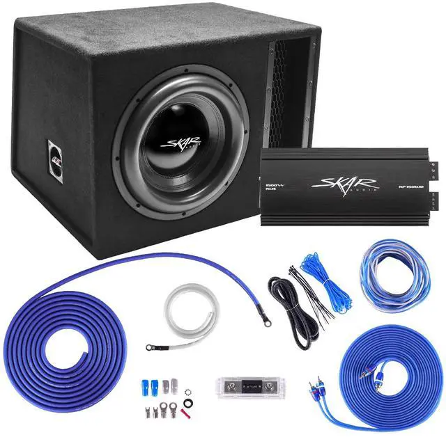 All-in-one complete EVL Series subwoofer bass package ^^ Single 12-inch subwoofer comes pre-wired and loaded in vented custom enclosure ^^ RP- 1500.1D Class D Amplifier and 4 gauge OFC wiring kit included ^^ Easy-to-install - tight and accurate bass ^^ 2, 500 Watts peak power - 1, 250 Watts RMS power