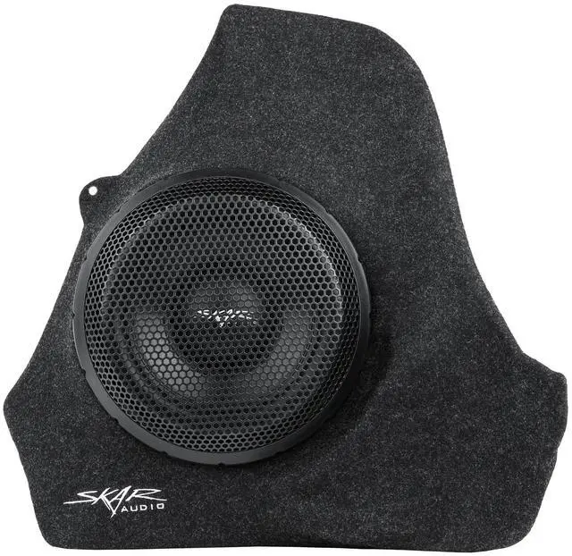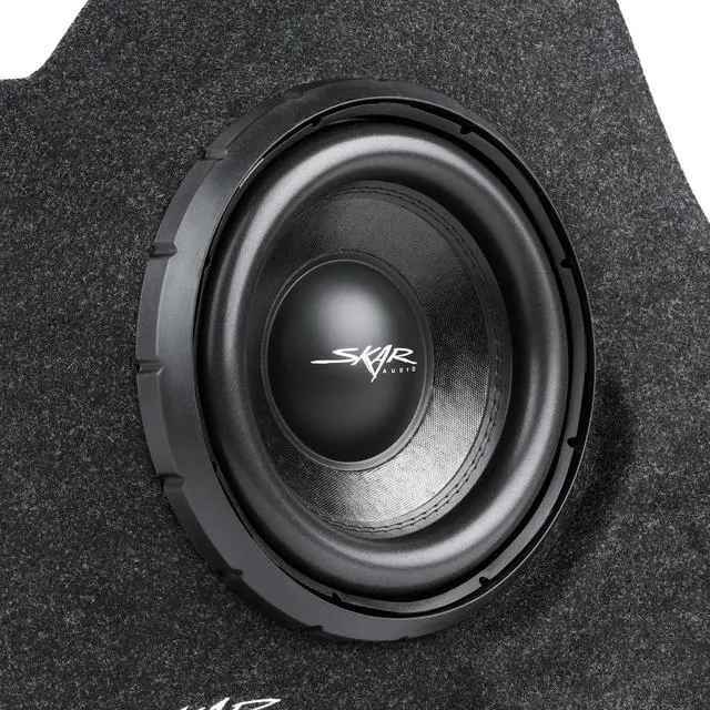 Single 10-inch 800 Watt Max Power Side-firing Loaded Subwoofer Enclosure ^^ Compatible with 2014-2019 Toyota Corolla Vehicles ^^ Features x1 Skar Audio VD-10 D2 (dual 2-ohm) 10" 800 Watt Max Power Subwoofer ^^ Subwoofer Comes Loaded and Pre-wired to a 1-ohm Final Impedance Load at the Terminal Wiring Cup ^^ Lightweight Fiberglass Design ^^ Finished in a Premium Automotive Grade Black Trunk-liner Carpeting