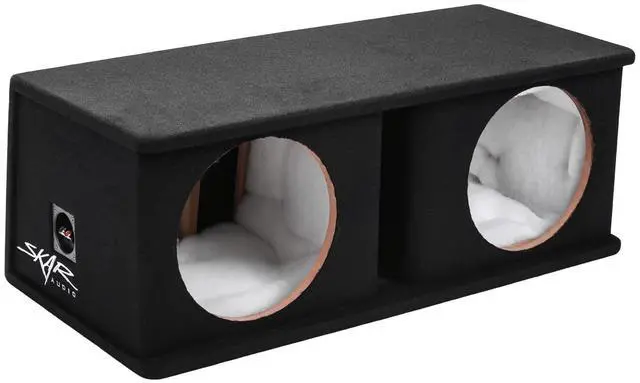 Skar Audio introduces its SK series line-up of high-performance subwoofer enclosures to bridge the gap between competition-grade quality and universal fit pre-fabricated enclosures. The SK2X12V subwoofer enclosure is a dual 12-inch, universal fit, ported, subwoofer enclosure that is designed for maximum bass and responsiveness. Finished in a premium black carpet and featuring the Skar Audio logo on the lower left side, this enclosure will look sleek and attractive in any application. When setting out to offer a line-up of premium, universal fit, subwoofer boxes, the end goal was to deliver a final product that was unlike anything else available on the market; setting new standards for quality and performance.