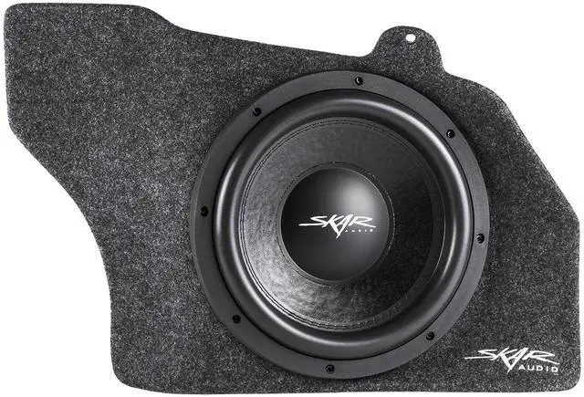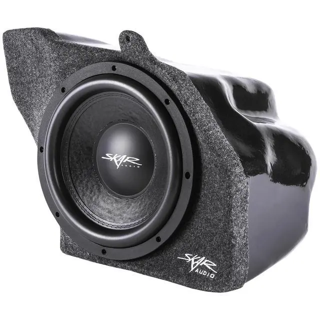 Single 12-inch 800 Watt Max Power Side-firing Loaded Subwoofer Enclosure ^^ Compatible with 2015-2025 Ford Mustang Hardtop Vehicles (Not Compatible with Convertible models) ^^ Features x1 Skar Audio VD-12 D2 (dual 2-ohm) 12" 800 Watt Max Power Subwoofer ^^ Subwoofer Comes Loaded and Pre-wired to a 1-ohm Final Impedance Load at the Terminal Wiring Cup ^^ Lightweight Fiberglass Design ^^ Finished in a Premium Automotive Grade Grey Trunk-liner Carpeting