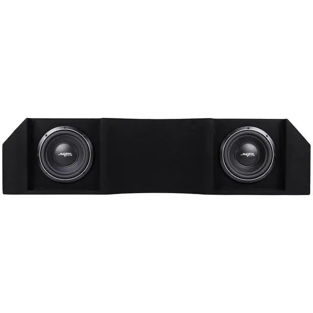 Dual 10-inch 2, 000 Watt Max Power Ported Down-firing Loaded Subwoofer Enclosure ^^ Compatible with 2016-2025 Nissan Titan Crew Cab Trucks ^^ Features x2 Skar Audio VS-10 D4 (dual 4-ohm) 10" 1000 Watt Max Power Subwoofers ^^ Subwoofers Come Loaded and Pre-wired to a 1-ohm Final Impedance Load at the Terminal Wiring Cup ^^ Deep & Responsive Bass Output ^^ Finished in a Premium Automotive Grade Black Trunk-liner Carpeting