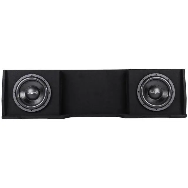 Dual 10-inch 1, 600 Watt Max Power Sealed Down-firing Loaded Subwoofer Enclosure ^^ Compatible with 1999-2006 Chevrolet Silverado/GMC Sierra Extended Cab Trucks ^^ Features x2 Skar Audio VD-10 D4 (dual 4-ohm) 10" 800 Watt Max Power Subwoofers ^^ Subwoofers Come Loaded and Pre-wired to a 1-ohm Final Impedance Load at the Terminal Wiring Cup ^^ Deep & Responsive Bass Output ^^ Finished in a Premium Automotive Grade Black Trunk-liner Carpeting