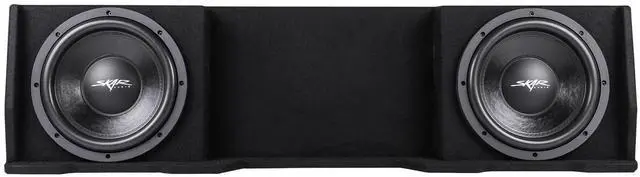 Dual 12-inch 1, 600 Watt Max Power Sealed Down-firing Loaded Subwoofer Enclosure ^^ Compatible with 1999-2006 Chevrolet Silverado/GMC Sierra Extended Cab Trucks ^^ Features x2 Skar Audio VD-12 D4 (dual 4-ohm) 12" 800 Watt Max Power Subwoofers ^^ Subwoofers Come Loaded and Pre-wired to a 1-ohm Final Impedance Load at the Terminal Wiring Cup ^^ Deep & Responsive Bass Output ^^ Finished in a Premium Automotive Grade Black Trunk-liner Carpeting