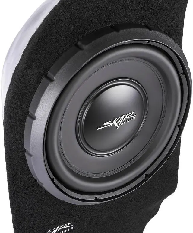 Single 10-inch 1, 000 Watt Max Power Side-firing Loaded Subwoofer Enclosure ^^ Compatible with 2017-2024 Mazda CX-5 Vehicles ^^ Features x1 Skar Audio VS-10 D2 (dual 2-ohm) 10" 1, 000 Watt Max Power Subwoofer ^^ Subwoofer Comes Loaded and Pre-wired to a 1-ohm Final Impedance Load at the Terminal Wiring Cup ^^ Lightweight Fiberglass Design ^^ Finished in a Premium Automotive Grade Gray Trunk-liner Carpeting