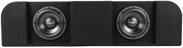 Dual 10-inch 1, 600 Watt Max Power Down-firing Loaded Subwoofer Enclosure ^^ Compatible with 2015-2025 Ford F-150 Super Crew Cab Trucks (Fits under Rear Seat of Cab) ^^ Features x2 Skar Audio VD-10 D4 (dual 4-ohm) 10" 800 Watt Max Power Subwoofers ^^ Subwoofers Come Loaded and Pre-wired to a 1-ohm Final Impedance Load at the Terminal Wiring Cup ^^ Deep & Responsive Bass Output ^^ Finished in a Premium Automotive Grade Black Trunk-liner Carpeting