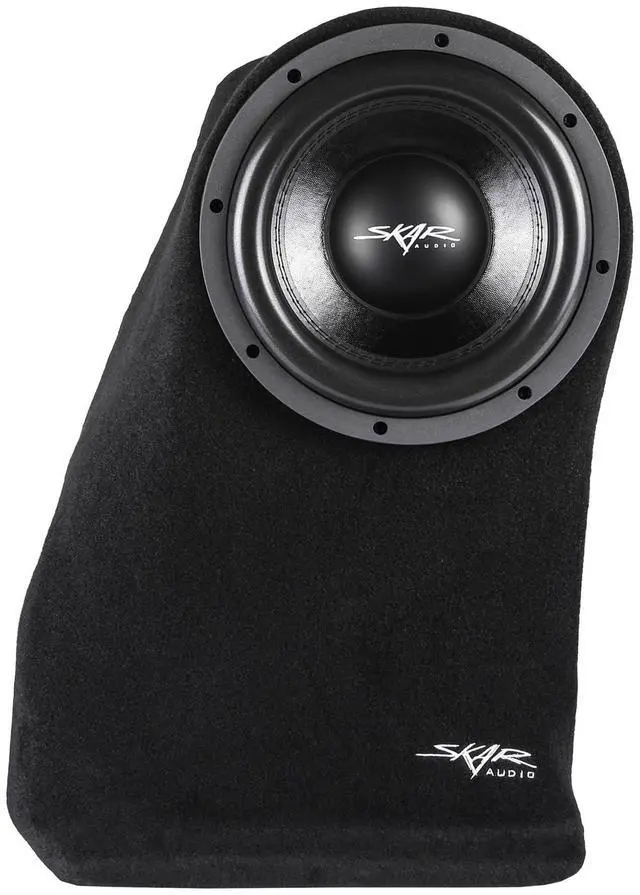 Single 10-inch 800 Watt Max Power Sealed Side-firing Loaded Subwoofer Enclosure (Passenger Side) ^^ Compatible with 2018-2025 Jeep Wrangler 4-Door (JL Series) Vehicles ^^ Features x1 Skar Audio VD-10 D2 (dual 2-ohm) 10" 800 Watt Max Power Subwoofer ^^ Subwoofer Comes Loaded and Pre-wired to a 1-ohm Final Impedance Load at the Terminal Wiring Cup ^^ Deep & Responsive Bass Output ^^ Finished in a Premium Automotive Grade Black Trunk-liner Carpeting