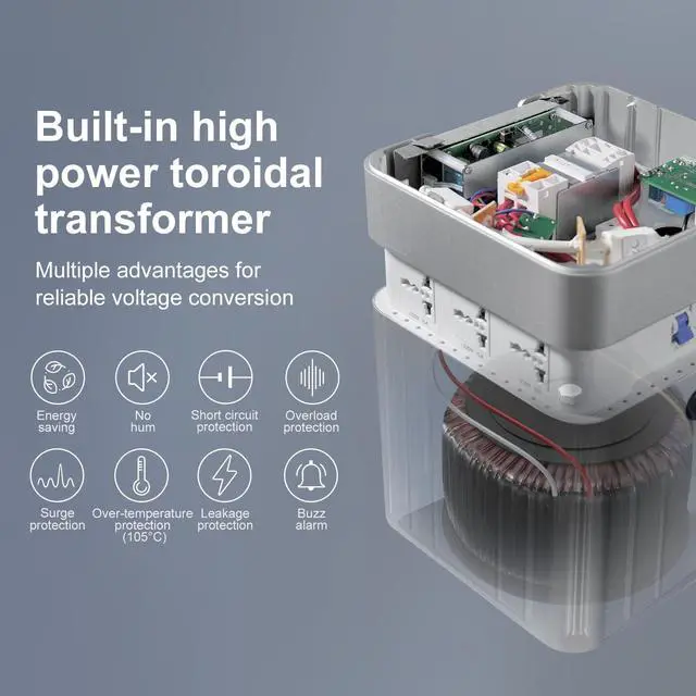 ^^ Screen Display Control Voltage Conversion Status. Easily monitor your device's power consumption in real time, keeping you informed at all times. ^^ Aluminum Alloy CaseBuilt with aluminum alloy shell for durability and superior heat dissipation, providing a guarantee for the stable operation of the product. The heavy duty voltage converter weighs 42.99 pounds, which uses toroid core and pure copper coils. With good transformer, the voltage converter has stable output and low consumption.
