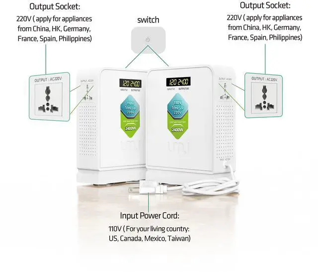 And with LED display, input voltage and power consumption will be displayed clearly. ^^ Power TransformerEnergy saving, quiet and high efficiency. With our UMI 2400 Watts Step Up Voltage Converter, you can use your UK, France, Germany, Italy, China, India, Vietnam and other countries 220v or 230v equipment in US 120v power system. Enjoy your life!