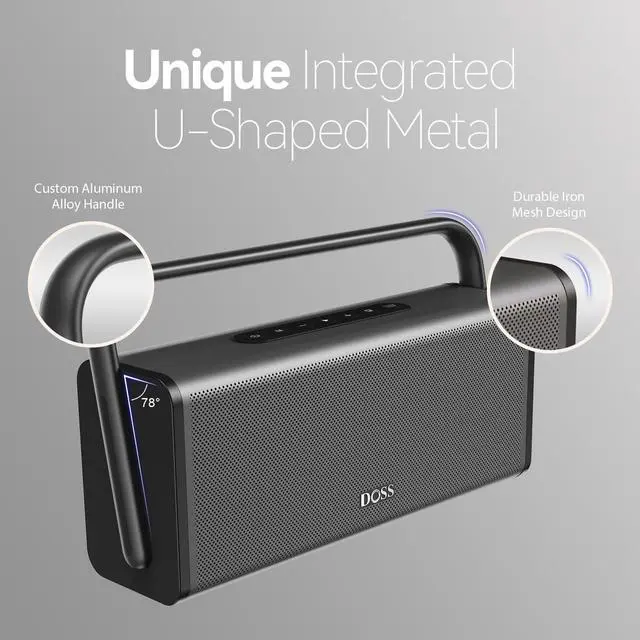 ^^ Stylish Design: Featuring a unique U-shaped metal design and a streamlined profile, this speaker not only delivers impressive sound but also elevates your decor, seamlessly blending in on counters or bookshelves. Built with sturdy iron mesh and a sleek aluminum alloy handle, it offers durability and easy portability, making it easy to carry around the space, from your living room, backyard, or outdoor gatherings.