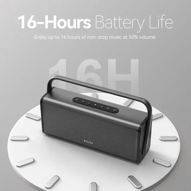 ^^ 16H Battery Life: With a long-lasting 16H battery life, this speaker keeps the music going from morning to night. Enjoy your favorite tracks all daywhether relaxing in the yard, hosting a party, or having a fun time with friends.