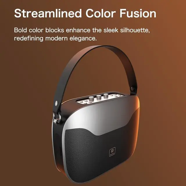 ^^ Sophisticated Modern Design: With its chic color-blocking design and eye-catching silvery top button panel, this Bluetooth speaker not only enriches your sound experience but also complements your interior design.