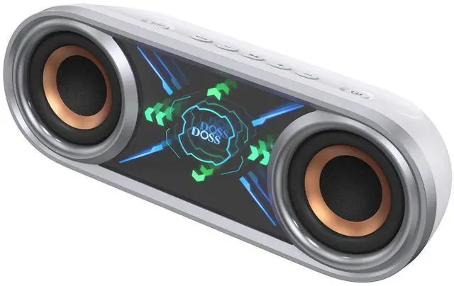 DOSS SoundBox Pro+ P400 Bluetooth Speaker, 50W Stereo Sound with Extra Bass, 26H Playtime, Cool Phantom Mirror Lights, IPX5 Waterproof for Outdoor, Home, Party, and Electronic Gadgets-White