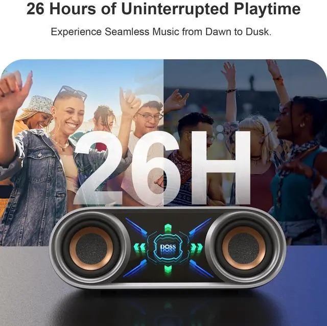 Dynamic Full-Range Sound: Powered by dual 25W full-range drivers and cutting-edge DSP technologies, the DOSS SoundBox Pro P400+ speaker is engineered to deliver rich, balanced sound that effortlessly fills any space, making it perfect for both outdoor adventures and casual home listening.